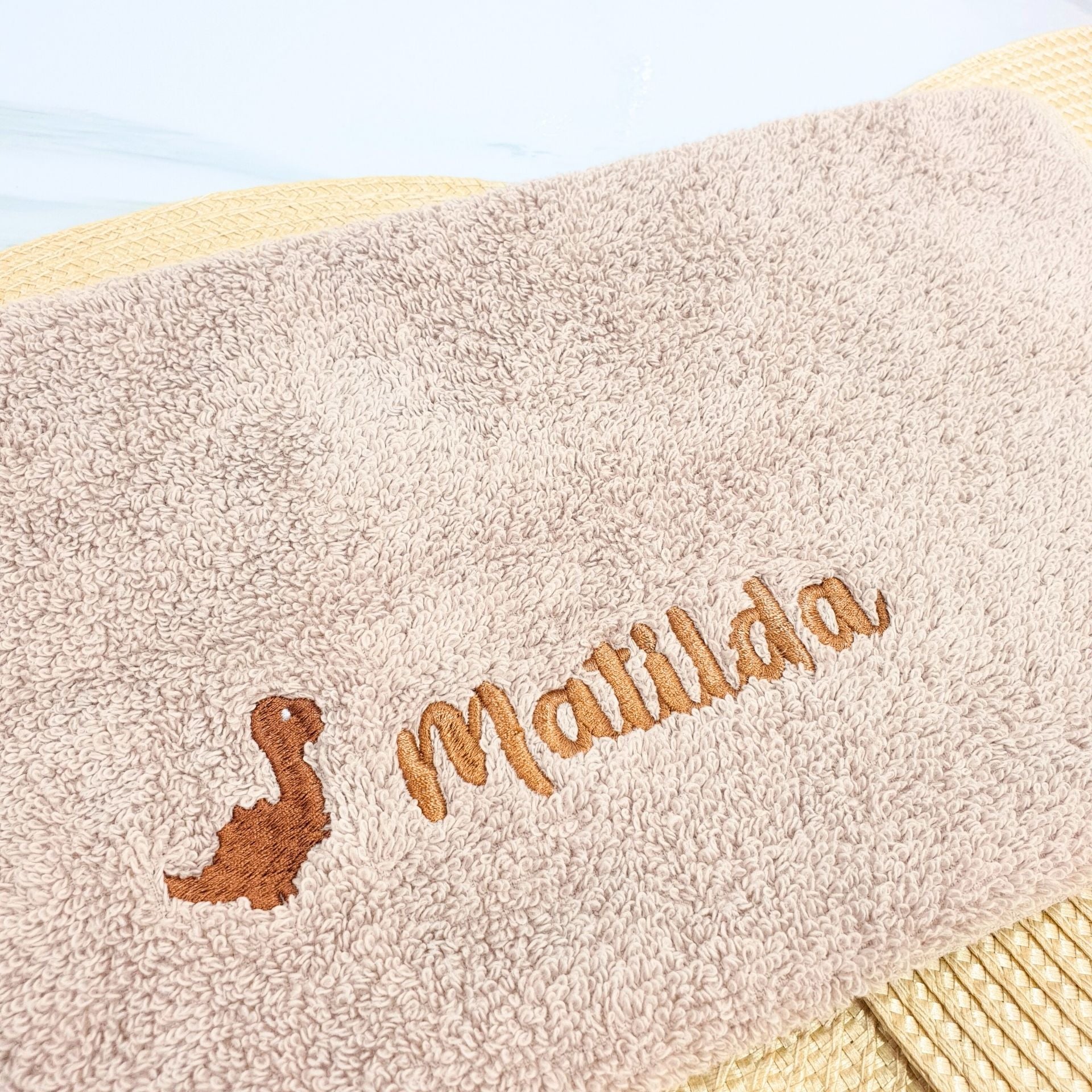 Make bath time a prehistoric adventure with our Personalised Embroidered Dino Bath Towel for Kids! Each towel is custom embroidered with your child’s name and a fun dinosaur design, creating a unique and thoughtful gift for kids that’s both cute and practical.