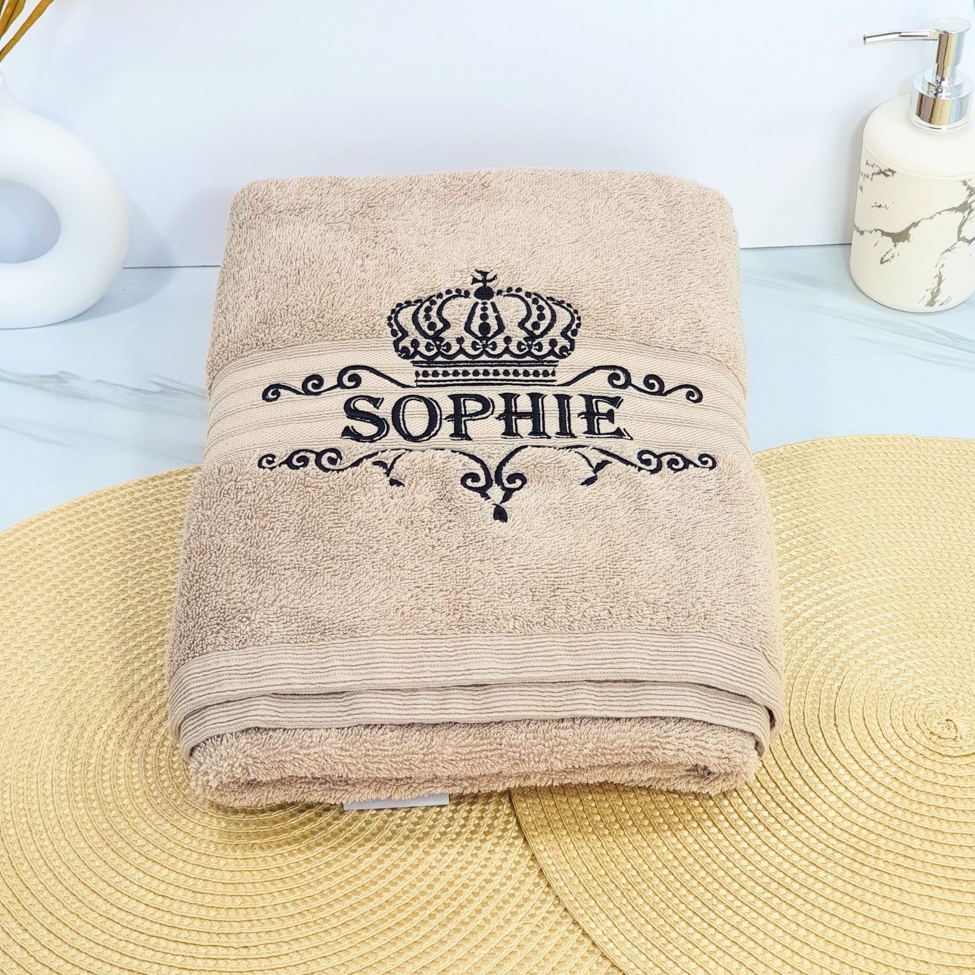 Personalised Embroidered Bath Towel with Crown Design C